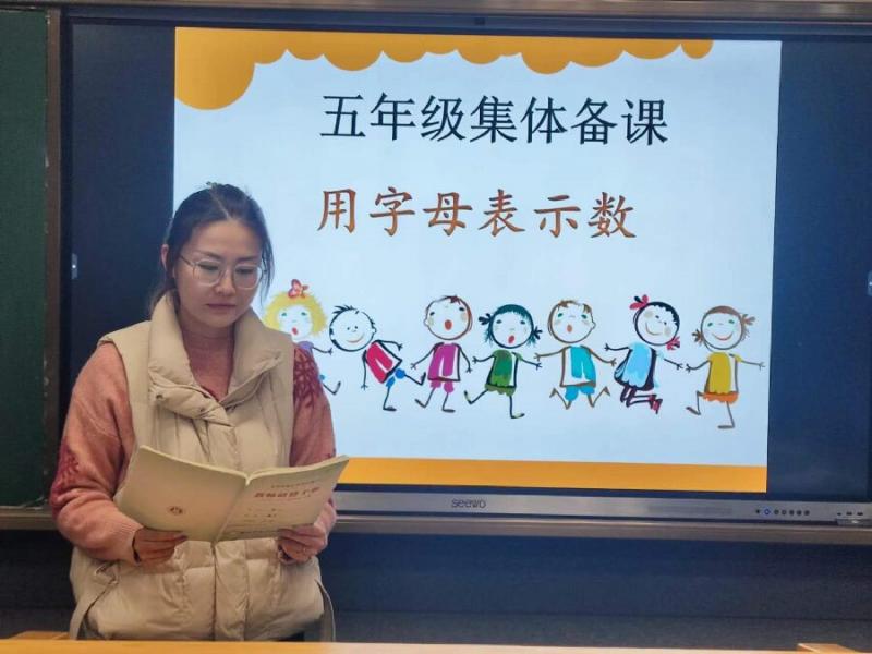 12月13日,张恬静老师开设公开课《用字母表示数》,课前我们进行了这节课的集体备课。张恬静、吴琼、潘怡玲三位老师分别说明了自己的设计,大家讨论提出修改意见,最终确定张恬静老师开课,课堂上学生学得很好,学习效果不错。