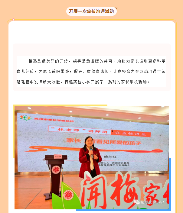 【家庭教育】同心同育,助力成长——梅堰实验小学家庭教育指导“五个一”活动