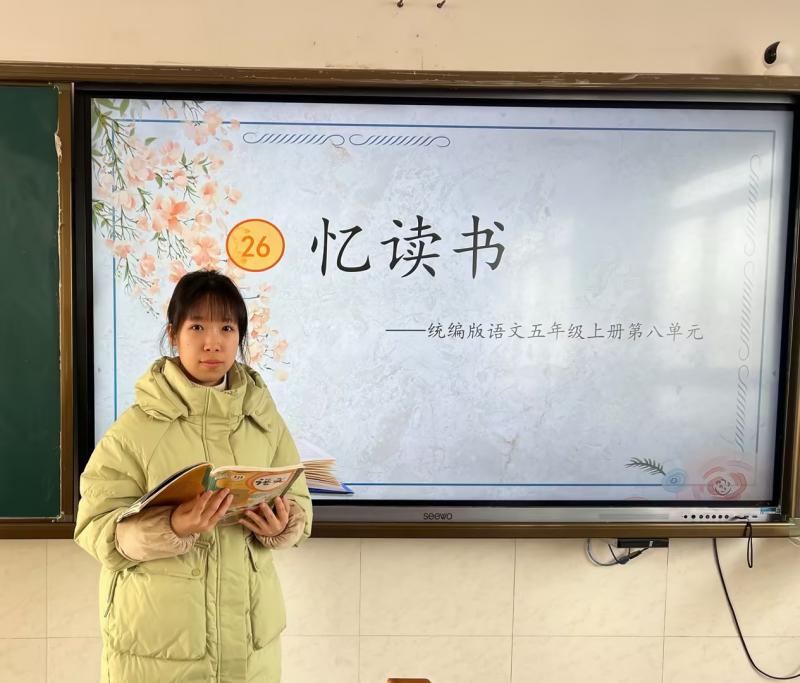 沈炜玥老师上了《忆读书》。作为今年刚上岗的年轻教师,沈老师的工作一向十分认真。开课前,沈老师就借6班先上了一次,让师傅卫老师去听一遍,再给出修改意见,最后再用自己班上。一课多磨,对年轻老师的成长是最快的。