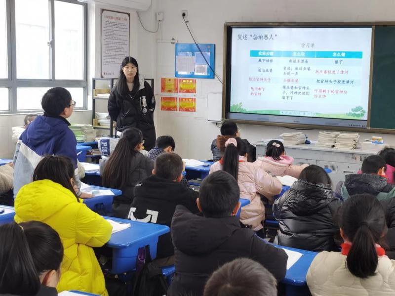 梅佳鸿老师上的是《西门豹治邺》。梅老师把训练重点放在了本单元的单元目标上,即提取关键信息加以复述。课上学生回答积极,效果良好。