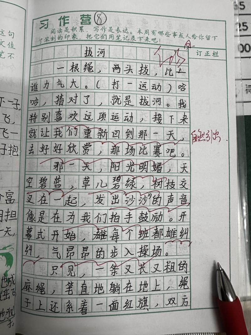 拔河 | 运动会中的拔河给你留下深刻印象,请用生动的文字再现当时的场景。 | 1. 采用点面结合的写法,写出拔河的场面。 2. 抓住人物的动作神情等细节,刻画人物形象。 |