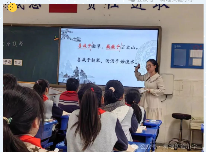 俗话说:“众人拾柴火焰高”,既然一个人冥思苦想未有结果,不如集思广益,头脑风暴。我向同事们发去“求救信号”。同事们给了我很多建议,经过一天一夜的纠结后,最终选定《伯牙鼓琴》。《伯牙鼓琴》选自《吕氏春秋·本味》,是一篇短小的文言文。文章由伯牙“喜遇知音”和“痛失知音”两部分组成,给我们表达了知音难觅、知己难求的人生主题。同时,通过他们的心意相通进而让我们领略到了音乐艺术的魅力和这份高山流水的知己情谊。