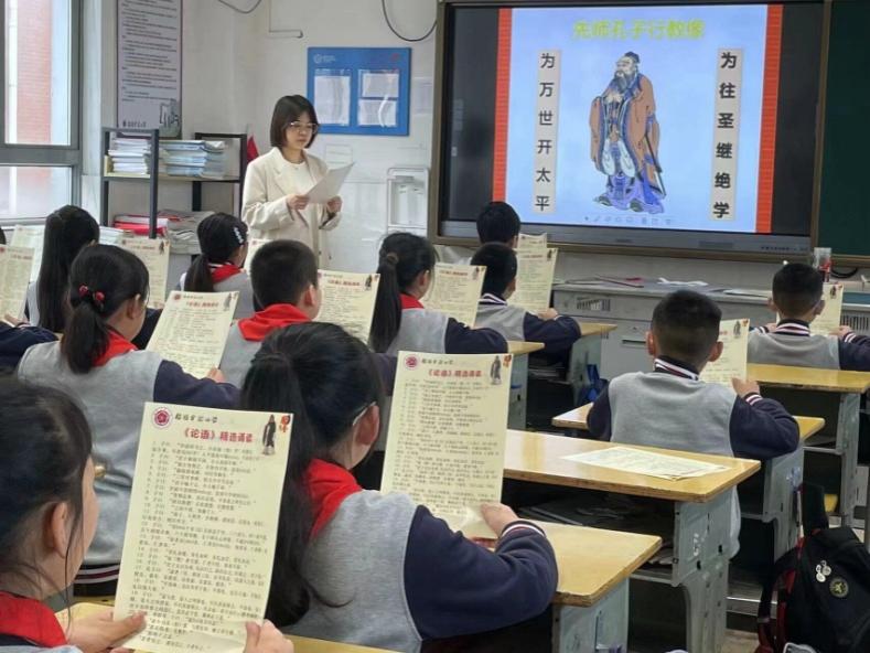 活动现场,校领导在国旗下讲话发出“世界读书日,人人读《论语》”的倡议,31个班级,共1377名学生,在31位语文老师的带领下,相约经典,齐声诵读《论语》篇章,铿锵有力的读书声在校园上空久久回荡。