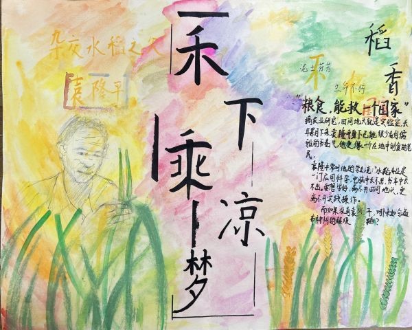 通过看电影、听故事,开展主题班会、绘画和手抄报等活动,深入了解中华民族的稻作文化、中国杂交水稻科技成就,学习了袁隆平爷爷勇攀高峰的科学家精神和勤笃劳作精神。