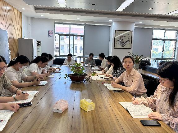 活动中,每个年级组的作业设计组长汇报自己组的作业设计,然后由上一届的一等奖获得者沈冰清老师给大家提一点修改意见,争取在原来的基础上更上一层楼。