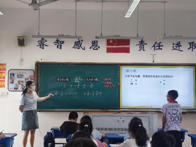 五年级青年教师潘怡玲和骨干教师张恬静开设同题异构课《异分母分数加减法》,教学研讨时,两位老师都能发现自己的问题,以及对方的优点,为后续把此课打磨成精品课做好准备。