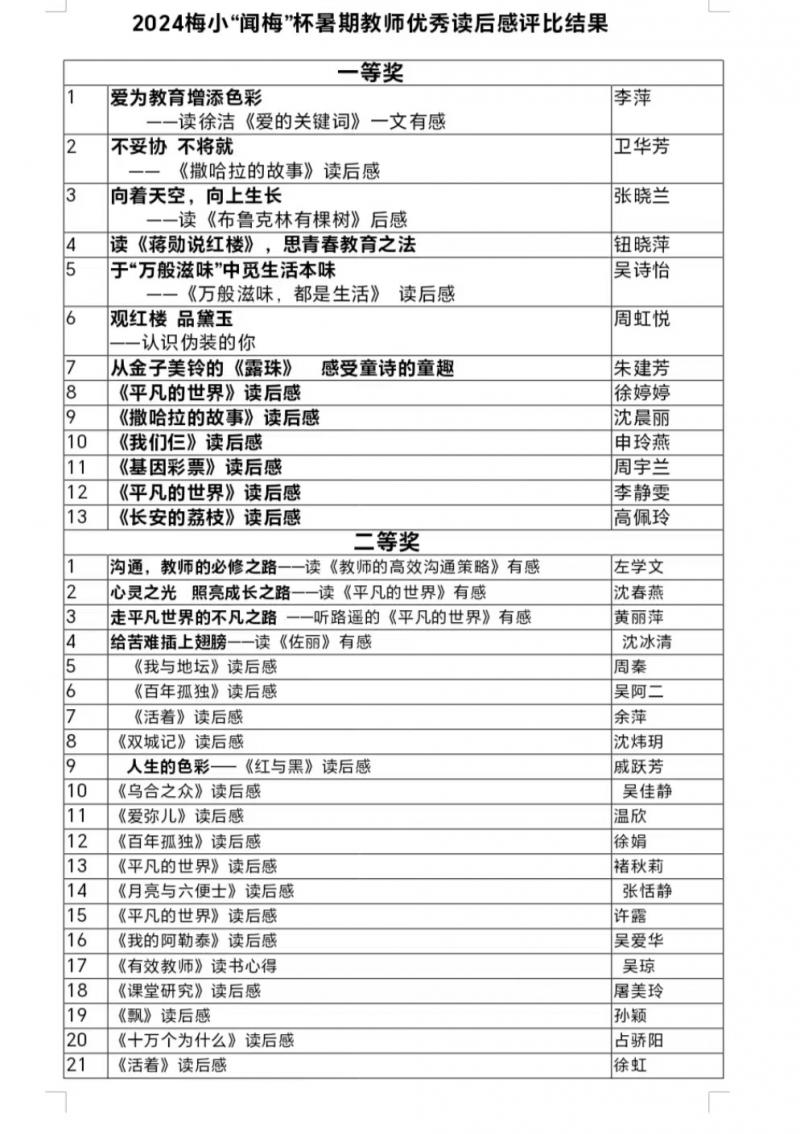 ------梅小“闻梅”杯暑期教师优秀读后感评比结果揭晓