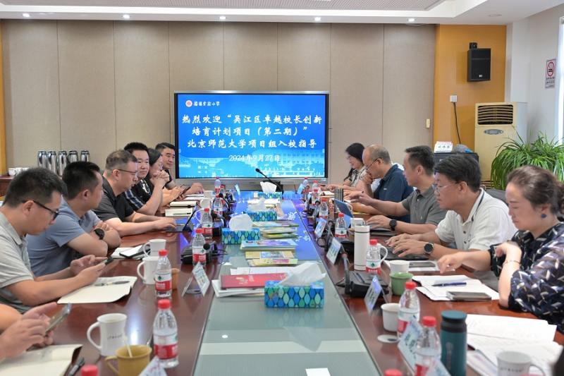9月27日,“吴江区卓越校长创新培育计划项目(第二期)”北京师范大学项目组入校指导活动在吴江区梅堰实验小学隆重举行。本次活动中,有幸邀请到北京师范大学教育学部教授、博士生导师鲍传友,北京教科院课程中心教研员、中国教科书评价与研究中心兼职研究员暴生军,北京师范大学庆阳附属学校创校校长、南京赫贤学校总校长孙定国三位教育专家为梅堰实验小学的未来五年教育发展规划提供了专业的指导。此外,北京师范大学教育培训中心、教学支持部副部长曹周杨、北师大教培中心教学支持部赵晓龙、吴江区教育局办公室付其鹏、教师发展中心网络教育处吴萍主任以及吴江区卓越校长班小学第一组的10位校长学员也共同参与了活动。