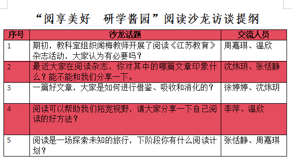 沙龙活动主要围绕期初教科室组织闻梅书社、梅苑教科协作组成员“研读江苏教育 助力读写结合”活动,开展了主题沙龙交流活动,老师们智慧闪烁,思维碰撞,把活动推向了高潮,本次沙龙活动由张晓兰老师主持。
