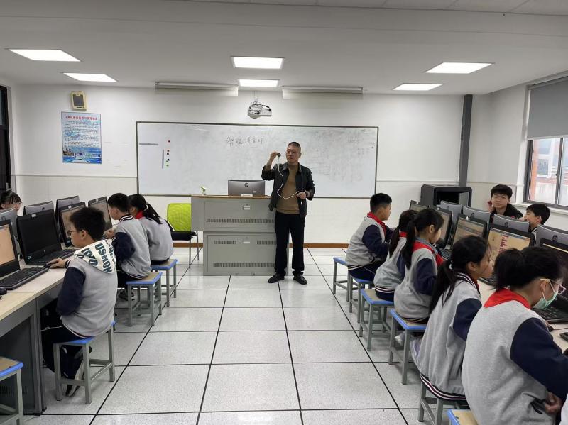 11月,科信组围绕本学期的教学内容,一起探讨如何做到提高增效。本月重点是对新课标的学习,通过学习提升学生的学习兴趣和效率,同时也能提升教师的基本功,另外对于本月的各类活动比赛做了布置。本月崔驰宇老师执教信息技术《双分支结构》教研课,双分支结构是程序设计中的基本控制结构之一,也是学生学习算法和程序设计的关键内容。崔老师通过生动的案例和实例,将真值和假值的概念进行对比讲解,帮助学生理解概念的区别和应用。比如通过大课间根据天气决定到不到操场锻炼,贴近学生的生活体验,便于学生理解。实践操作过程中,采用任务驱动和实践操作的方式,梳理问题的逻辑关系,让学生在流程图绘制中掌握双分支结构的原理和应用。双分支结构是程序设计中重要的控制结构之一,对于学生的理解和应用能力要求较高。通过强化概念讲解、实践操作和对比教学等措施的实施,可以提高教学效果和学生的学习能力,为学生的编程实践打下坚实基础。钱飞老师执教《斜面》教研课,钱老师利用课本书上的竹筒图片引导学生体会生活中的斜面,并思考斜面的作用。通过四个活动任务,探究斜面的作用。活动一和活动二总结出:通过斜面将物体从高处搬运到低处,物体可以借助自身重力从高处沿斜面滑到低处,整个过程人不需要额外施加压力。在活动三和活动四,学生通过弹簧测力计能够对比发现斜面更省力。吴志强老师执教《智能语音灯》教研课,在教师的引导下,学生通过与智能语音灯的互动,深入理解抽象过程与控制的基本原理。使原本枯燥的知识点在寓教于乐的氛围中变得生动有趣,学生们收获颇丰。通过这样的教学手段,让学生们在思考的氛围中掌握知识。贴近学生生活设计案例,让学生感受身边的信息技术、人工智能,学生会更加感兴趣。培养学生利用自己掌握的技术来改变身边的事物的意识。