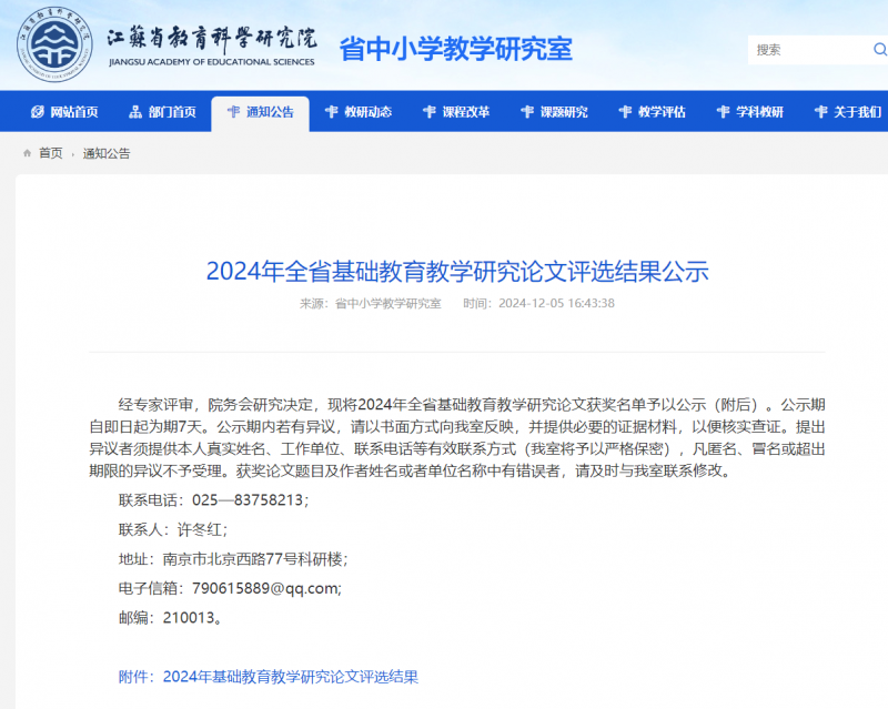 【教科研动态】喜讯:我校两位教师在2024年江苏省基础教育研究论文获特等奖