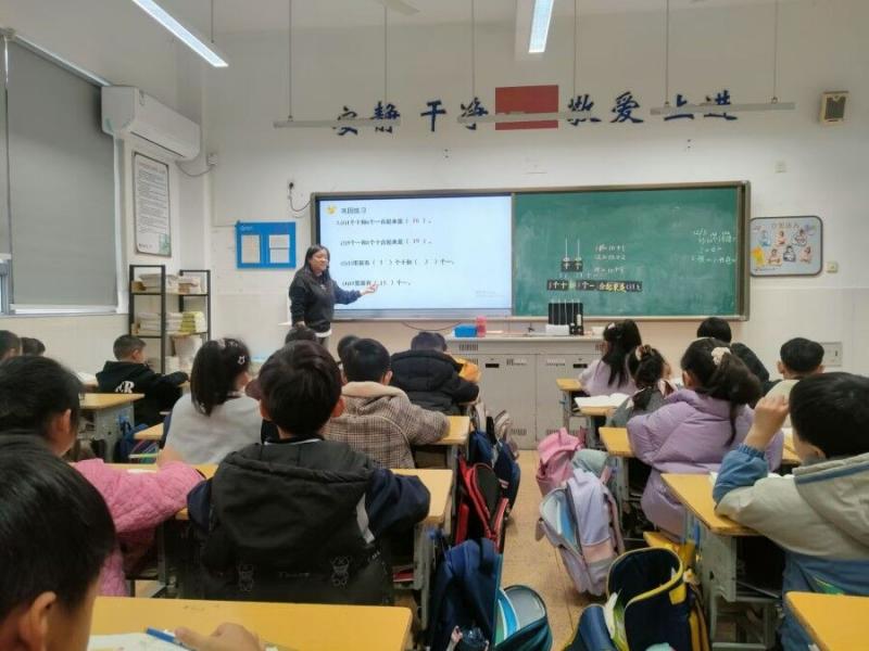 12月3日,吴敏老师开设骨干教师公开课《认识11-19》,课上,一年级的小朋友通过摆正方体,拨计数器这样的操作活动,初步认识了数位“十位”“各位”,以及十几的数的组成。12月5日,沈悦老师开设教研课《观察物体》,课上,学生围绕学具“小黄鸭”进行前后左右四个方向的换位观察,并正确辨别出同一物体不同角度的图片。12月10日,杨鄂萍老师开设教研课《十几加、减几》,学生在计数器的操作中理解算理,掌握算法。我们的教研课质量在老师们的努力下正在不断提高。