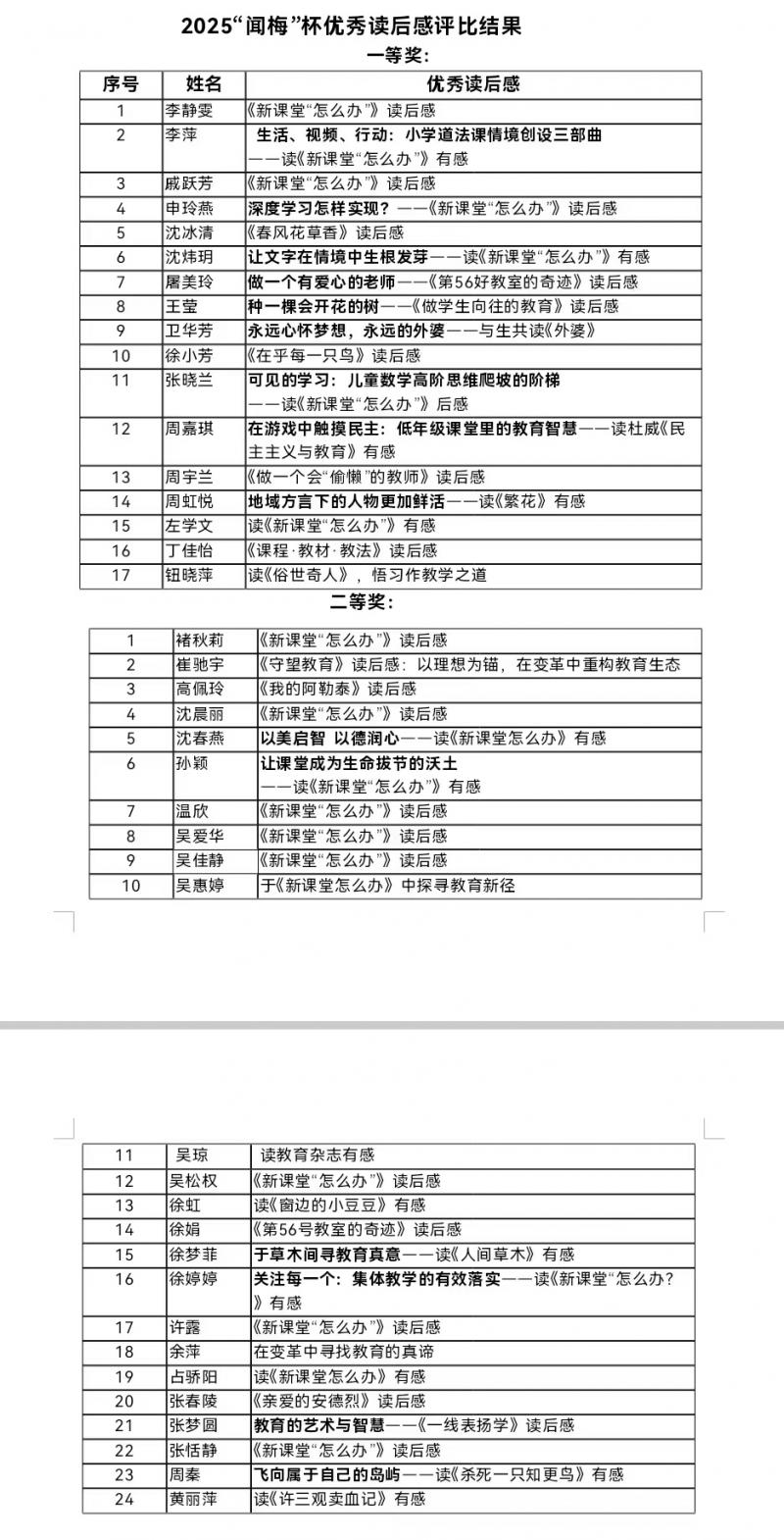 寒假期间,梅小教师潜心阅读、笔耕不辍,提交了高质量的文章,共收到39篇论文,41篇读后感。经过教科室认真评选,最终评出论文一等奖16篇,二等奖23篇;读后感一等奖17篇,二等奖24篇。教科室戴西洋主任和办公室主任申玲燕老师为获奖教师颁发证书。