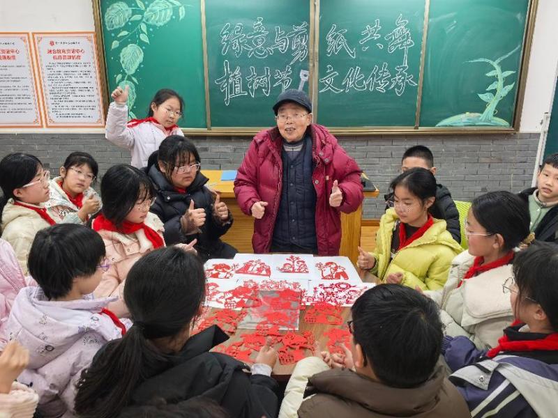 春意盎然,万物复苏。在这生机勃勃的季节里,一场别开生面的文化活动在校园内如火如荼地展开。老艺术家走进校园,与师生们共同开展“绿意与剪纸共舞,植树节文化传承”活动,为春天的校园增添了一抹别样的色彩。