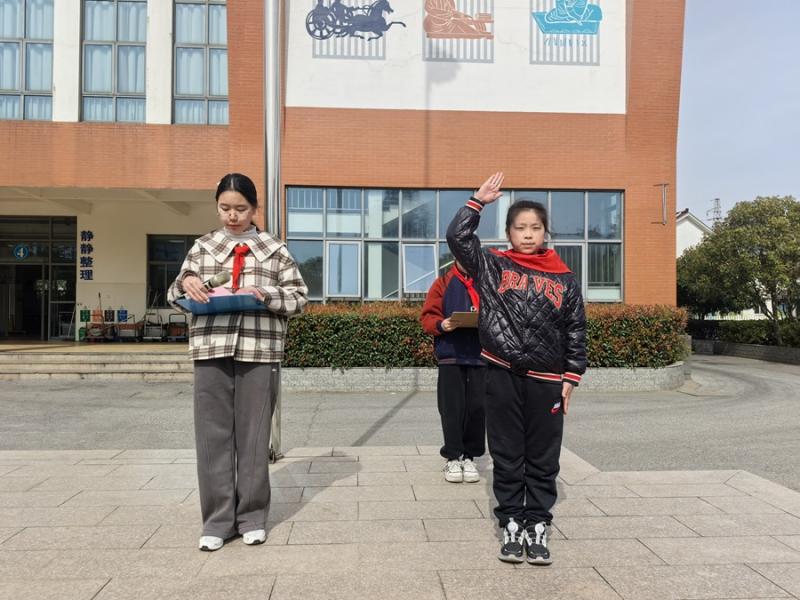 本周在国旗下接受表彰的“养正少年”是三(1)中队的王语晨,她的品格关键词是“进取”。