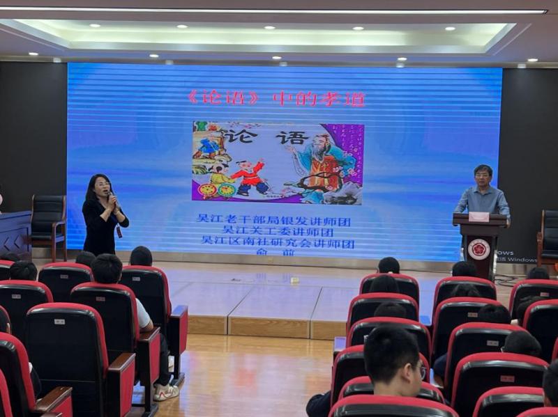为弘扬中华优秀传统文化,2025年4月21日下午,吴江老干部局银发讲师团、吴江关工委讲师团、吴江区南社研究会讲师团俞前老师以“《论语》中的孝道”为主题,结合鲜活的生活案例,带领梅小六年级学子们共话孝道传承,让两千五百年前孔子关于“孝”的教诲,在新时代焕发出温暖的生命力。朱耀琴书记参与并主持活动。