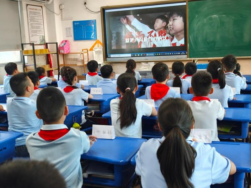 活动中,各班级统一观看了市教育局精心制作的思政课视频《时光种子,少年接力》,通过生动感人的影像资料,激发同学们的爱国热情与责任担当。随后,各中队围绕“爱国主义”“集体主义”“强国复兴”等主题,开展了形式多样的班队会活动,结合“九三抗战胜利纪念日”进行实境教育和主题宣讲,进一步增强学生的历史使命感和社会责任感。