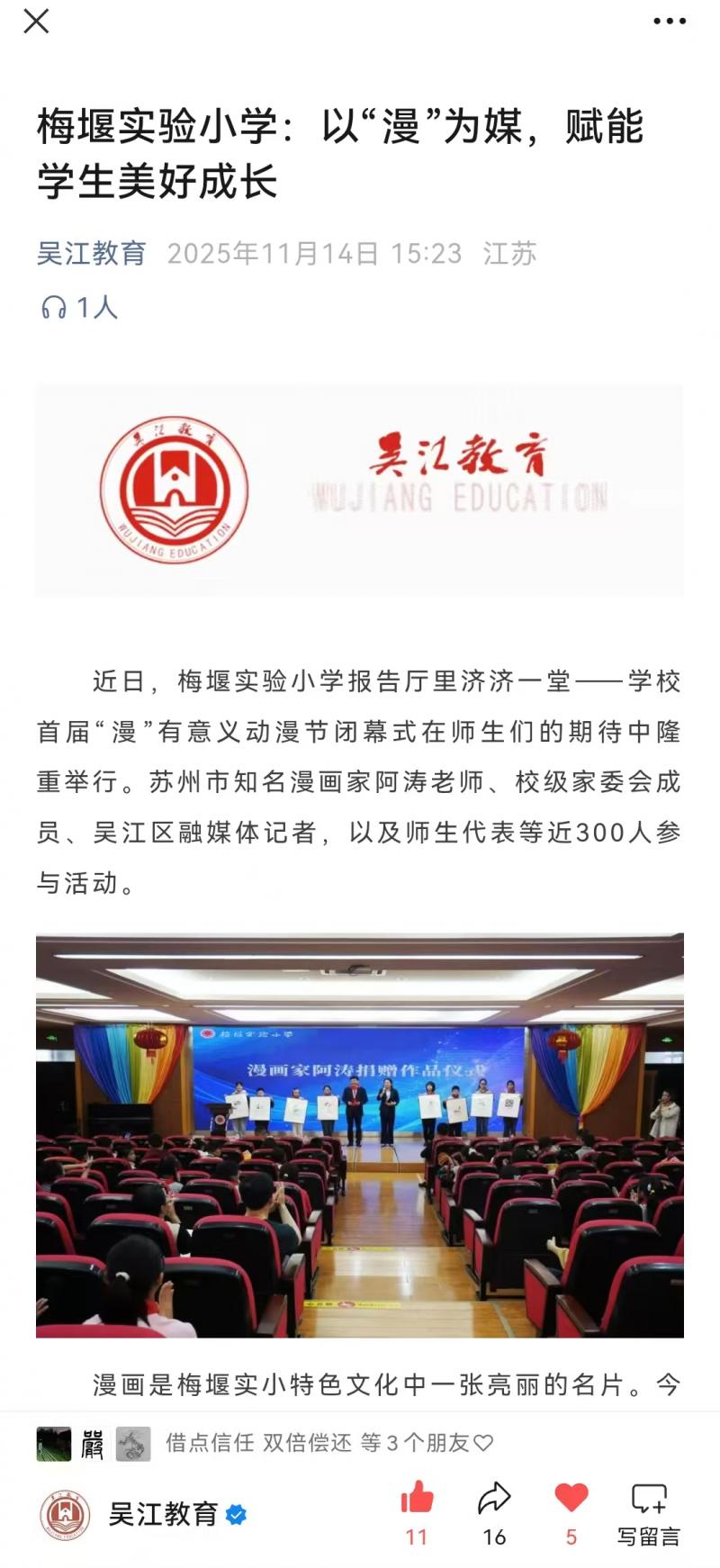 梅堰实验小学:以“漫”为媒,赋能学生美好成长