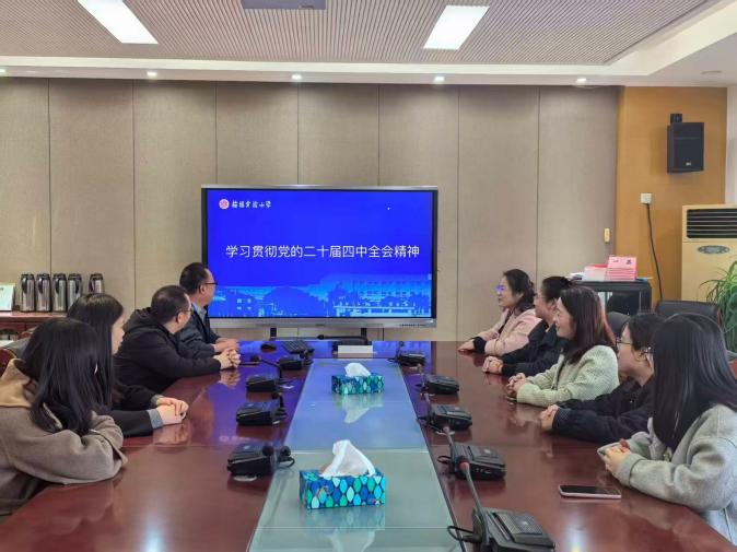 朱耀琴书记带领与会党员学习党的二十届四中全会精神。她强调,全会围绕推进中国式现代化、全面深化改革等作出战略部署,意义重大。我们要深刻领会其精神实质,特别是关于教育强国建设的重要论述,牢牢把握教育的政治方向和育人导向。全体党员要提高政治站位,将思想和行动统一到中央决策部署上来,把学习成果转化为立德树人的实际行动,不断增强党支部的凝聚力和战斗力。
