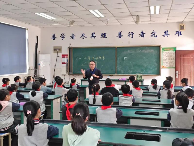 12月,科信组安排唐建荣老师执教《让小车动起来》和高玉峰老师执教《斜面》两节教研课。唐老师通过展示自行车、汽车、马车等多样交通工具的图片,成功将学生的生活经验与科学课题连接,并为“理解不同动力类型”的概念目标埋下伏笔。通过学生小组合作,利用垫圈重力牵引小车运动,是本课的核心,从组装小车到设计“改变垫圈数量”的实验方案,学生经历了预测、计划、操作、记录的全过程。不仅巩固了“力与运动”的概念,更显著锻炼了他们的动手协作能力和实验设计能力。在分享实验数据时,引导学生从简单的现象描述转向基于证据的论证。引入“踢足球”的情境,让学生运用新知解释“如何让足球运动、静止或改变方向”,很好地检验了概念的理解与应用,实现了知识的迁移。